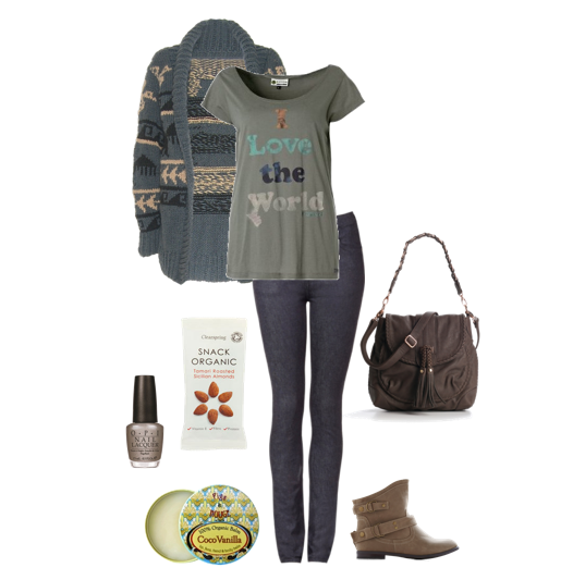 - Cardigan: made from sustainable wool with a fleece lining. “This item is knitted by a fair trade group in Nepal, part of the WFTO and Fair Trade Nepal Group.” Seen on www.fashion-conscience.com