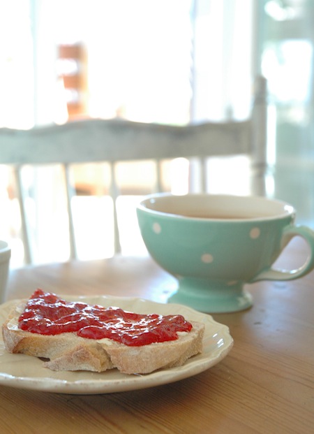 After our bellies and baskets were full with strawberries, we went home and I made my first jam batch of the year. I’ve been collecting jars for months already…