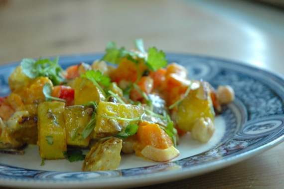 This morning I had to decide what to make for lunch and didn’t feel very inspired. And what to do when not inspired? Yes… you go on Pinterest ; ) On my “Love The Veggies”ย board I allready collected so many pictures of tasty looking meals and this morning a picture of a Warm Butternut Squash Salad caught my attention in particular. I still have a couple of butternut squashes left from our garden, so it seemed like a great idea. I added some more vegetables and made some changes to the recipe and this is what came out of it: