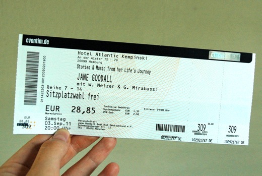 I really want to recommend the movie “Jane’s Journey”ย if you want to do so (it’s also available in Germany). You will be amazed by the stories of her life and the variety of her projects – and this movie is just a small insight. The topics shown on the DVD are more or less the ones she talked about in her charity event. That way you will get an even better idea what the evening was about.