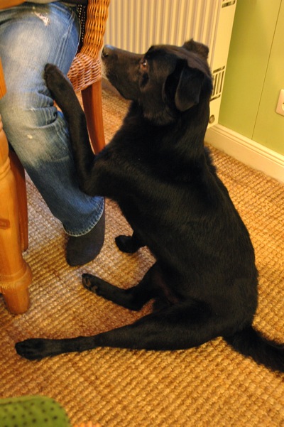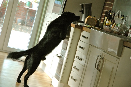 As if I wouldn’t see it, Fritzi was trying to be sneaky and steal some bread. It was just a bit out of reach. So in the end he had to try it the charming way….